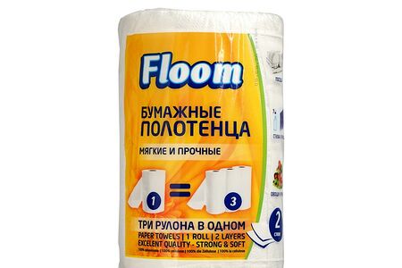 Бумажное полотенце Floom 2х-слойное 3 рулона в 1 доставка