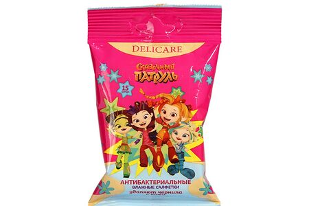 Влажные салфетки Delicare Сказочный Патруль антибактериальные 15 шт доставка
