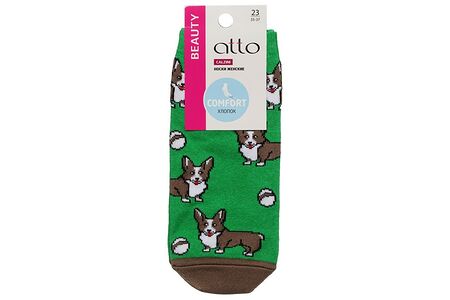 Женские носки Atto трикотажные " Корги " зеленые, размер 23 доставка