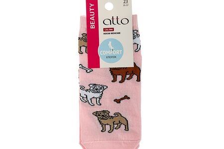Женские укороченные носки Atto 67-4ЛС " Мопсы " , Розовый , р.23 доставка