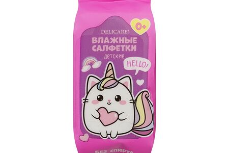 Детские влажные салфетки Delicare mini " Котик-Единорог " 0+ 8шт доставка