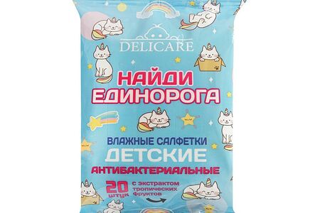 Детские влажные салфетки Delicare Baby " Найди Единорога " антибактериальные 20шт доставка
