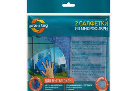 Набор салфеток из микрофибры для мытья окон Guten Tag 30*30см , 2шт доставка