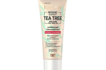 Тональный крем для лица Eveline Tea tree антибактериальный матирующий 03 Light beige доставка