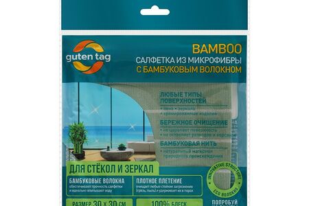 Салфетка из микрофибры с бамбуковым волокном Guten Tag для стекол и зеркал 30*30см доставка