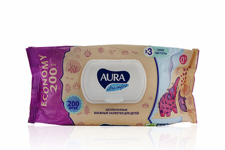 Влажные салфетки Aura детские , с крышкой 200шт доставка