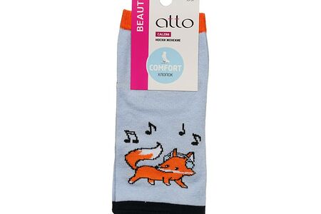 Женские носки Atto трикотажные, голубые, Лисички, р.23 доставка