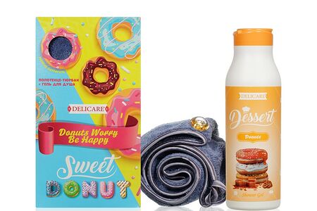 Женский подарочный набор Sweet Donut ( гель для душа Delicare Dessert 400мл + полотенце - тюрбан Aqua Joy ) доставка