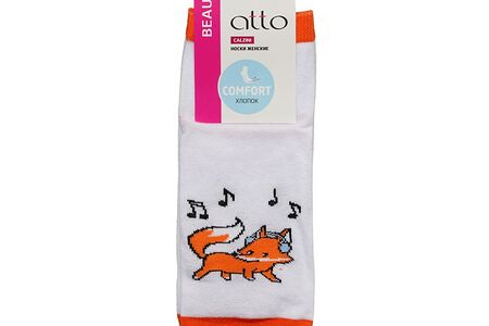 Женские носки Atto трикотажные, белые, "Лисички", р.25 доставка