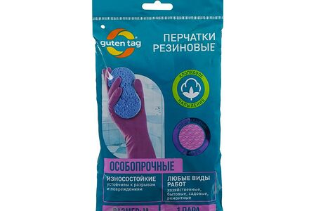 Резиновые перчатки Guten Tag с хлопковым напылением M 1 пара доставка