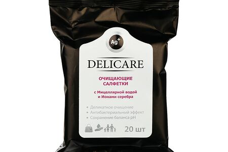 Освежающие влажные салфетки Delicare с мицеллярной водой и ионами серебра 20шт доставка