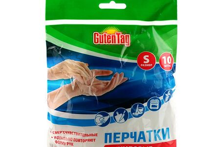 Одноразовые перчатки Guten Tag виниловые размер S 10шт доставка