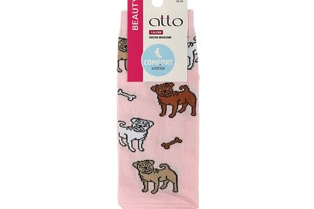 Женские укороченные носки Atto 67-4ЛС " Мопсы " , Розовый , р.25 доставка