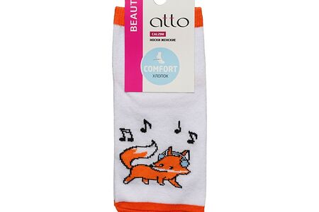 Женские носки Atto трикотажные , белые " Лисички " р.23 доставка