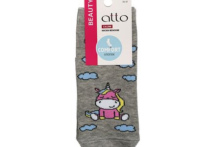 Женские укороченные носки Atto 69-5ЛС " Единорог Облака " , серый меланж , р.23 доставка