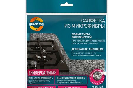 Салфетка из микрофибры Guten Tag универсальная серая 30х30 см доставка
