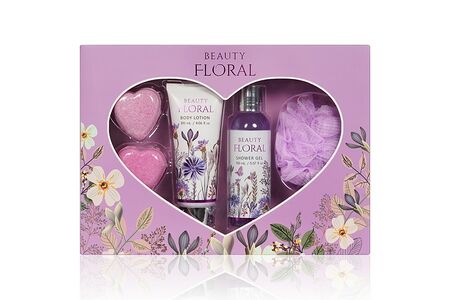 Женский подарочный набор Beauty Floral ( гель для душа 150мл + лосьон для тела 120мл + Физзер 2шт + мочалка для тела ) доставка