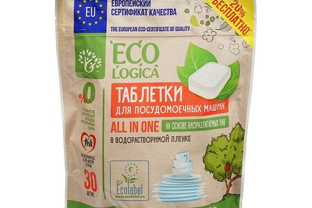 Таблетки для посудомоечных машин Ecologica All in one в водорастворимой пленке 30шт доставка
