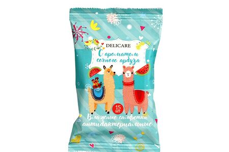 Детские влажные салфетки Delicare " Ламы " антибактериальные 15шт доставка