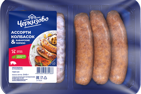 Колбаски ЧЕРКИЗОВО Баварские и Чоризо, ассорти, 540г доставка