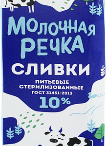 Сливки стерилизованные МОЛОЧНАЯ РЕЧКА 10%, без змж, 200г доставка