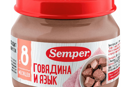 Пюре Semper говядина с языком с 8 месяцев 80г, Россия доставка