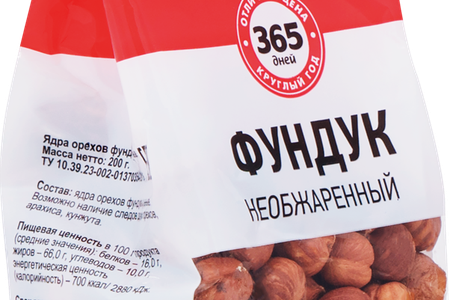 Фундук 365 ДНЕЙ необжаренный, 200г доставка