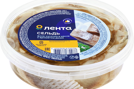 Сельдь Лента Матье, филе-кусочки с дымком в масле, 400г доставка