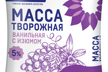 Масса творожная ЛЕНТА ванильная с изюмом натур 5% без змж доставка