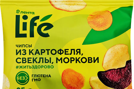 Чипсы овощные хрустящие ЛЕНТА LIFE Картофель, свекла и морковь, 25г доставка