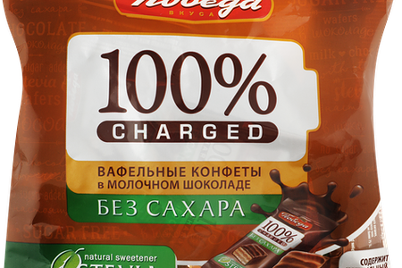 Конфеты вафельные ПОБЕДА ВКУСА Charged в молочном шоколаде без сахара 150г доставка