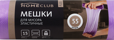 Пакеты для мусора Flex 55л эластичные от бренда HOMECLUB – прочные и