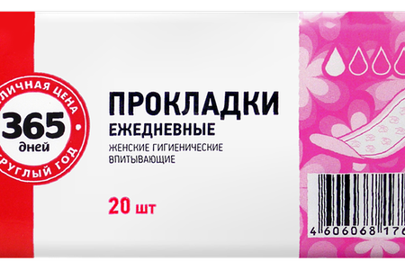 Прокладки ежедневные гигиенические 365 ДНЕЙ впитывающие, 20шт доставка