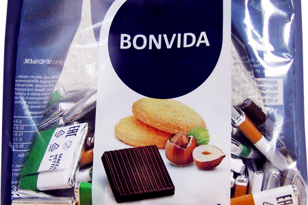 Шоколад молочный BONVIDA Ассорти с печеньем и фундуком доставка