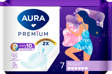Прокладки AURA Premium Night, 7шт доставка