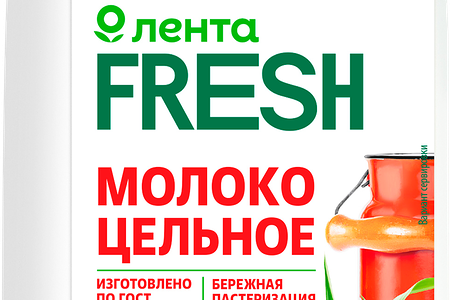 Молоко пастеризованное ЛЕНТА FRESH цельное 3,4–4,7%, без змж, 900мл доставка
