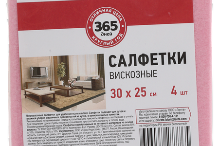 Салфетки 365 ДНЕЙ вискозные 30х25см, 4шт доставка