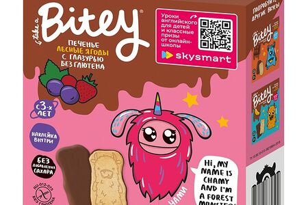 Печенье безглютеновое Bitey с глазурью Лесные ягоды (без сахара) 125г, Россия доставка