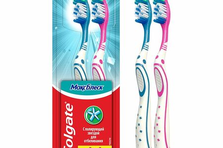 Зубная щетка Colgate МаксБлеск, средней жесткости, 2 шт. доставка
