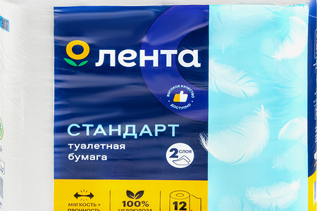 Бумага туалетная Лента 2 слоя белая, 12 шт. доставка