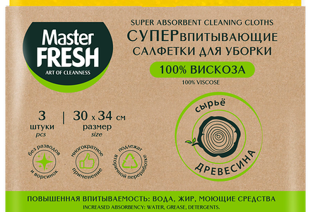 Салфетки для уборки MASTER FRESH 30x34см, супер впитывающие, 3шт доставка