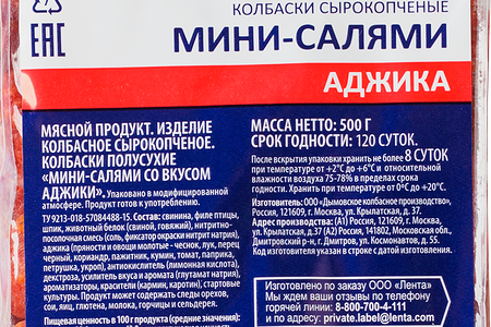Колбаски сырокопченые BONVIDA Мини-салями со вкусом аджики, 500г доставка