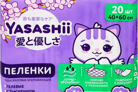 Пеленки одноразовые YASASHII впитывающие с суперабсорбентом 40x60см, 20шт. доставка