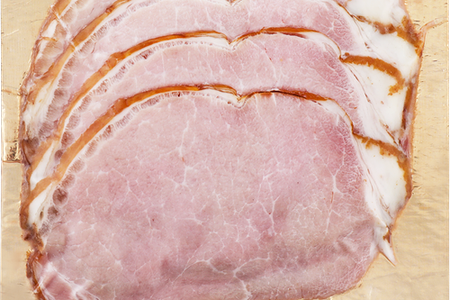 Карбонат сырокопченый из свинины МИТ ХАУС Особый, нарезка. Для его приготовления используется только свежее фермерская свинина. Копчение продукта происходит традиционным способом на ольховой щепе. Используется как закуска, входит в состав мясных нарезок, дополняет горячие основные блюда.