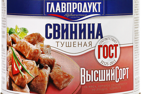 Свинина тушеная ГЛАВПРОДУКТ ГОСТ – полностью готовый к употреблению продукт с мягкой нежной текстурой и выразительным мясным вкусом. Его можно подавать с гарниром из картофеля, круп и овощей, использовать для приготовления рагу и других блюд.