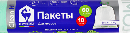 Пакет для мусора Lomberta с принтом, с затяжкой, 60л, 10шт доставка