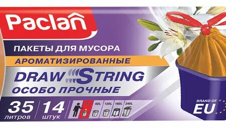 Мешки для мусора Paclan Aroma с завязками 15 мкм, 35 л, 14 шт. доставка