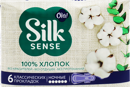 Прокладки OLA! Silk sense Night Cotton хлопковая поверхность тонкие, 6шт доставка