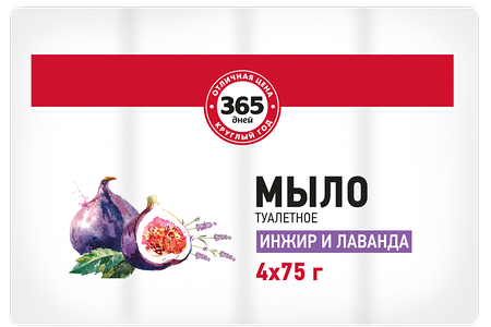 Туалетное мыло 365 ДНЕЙ Фруктовое инжир и лаванда, 4x75г доставка