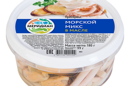 Коктейль из морепродуктов Меридиан Морской микс в масле доставка